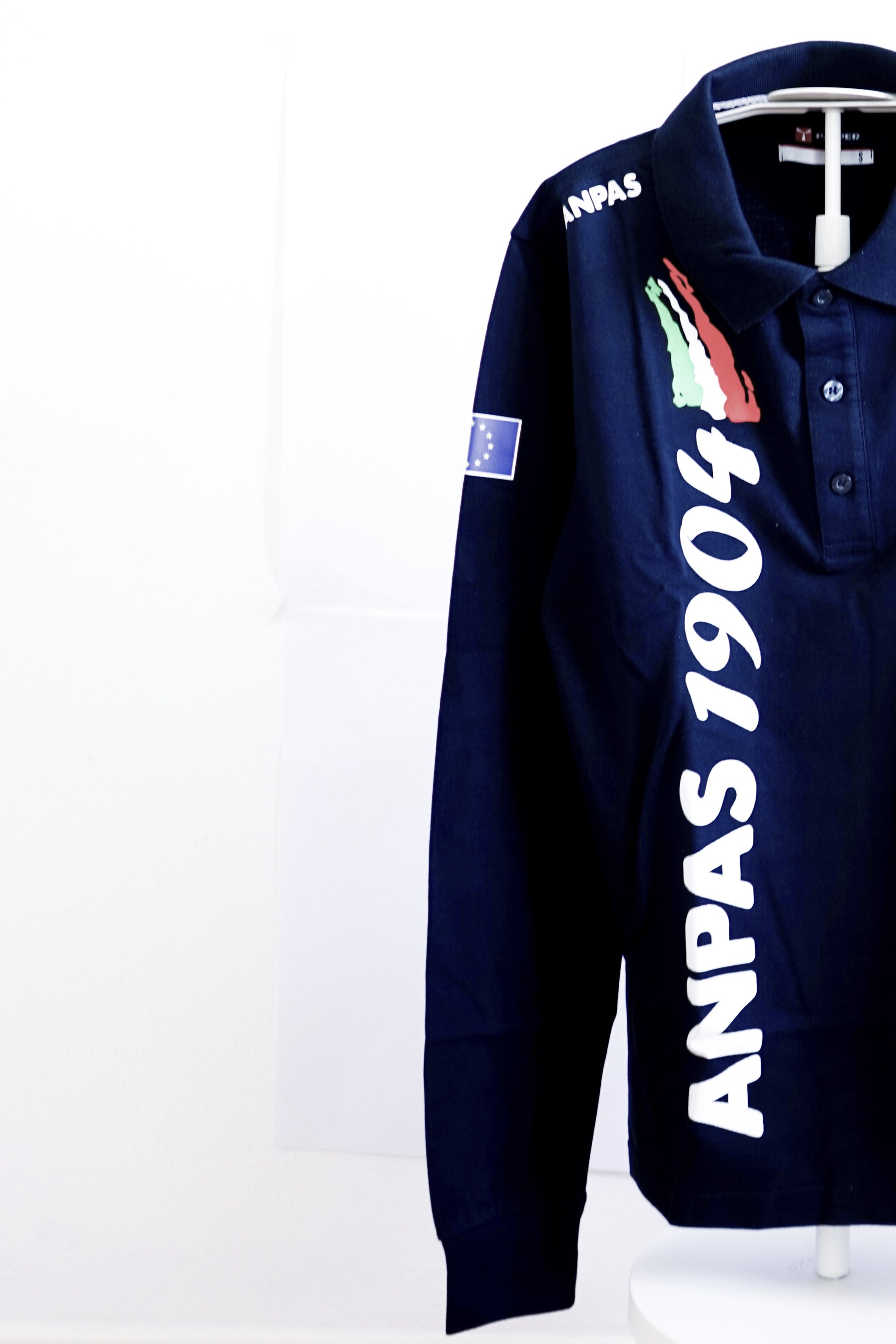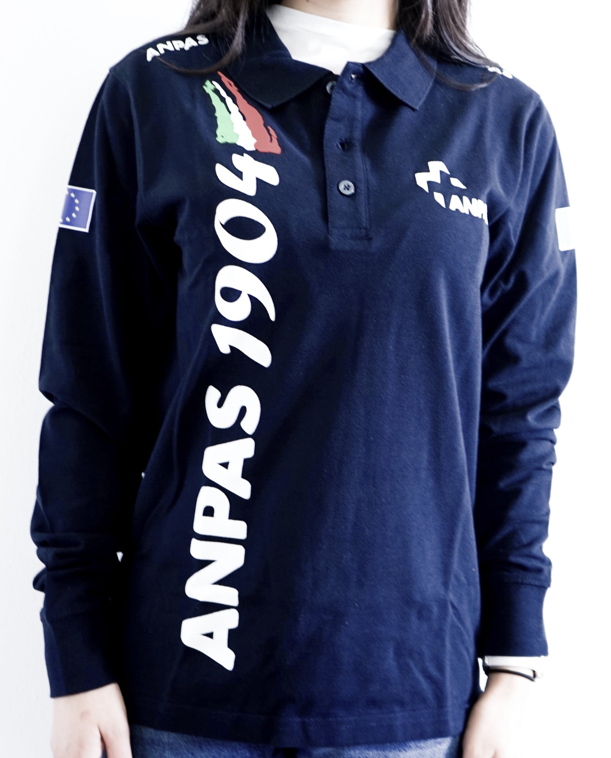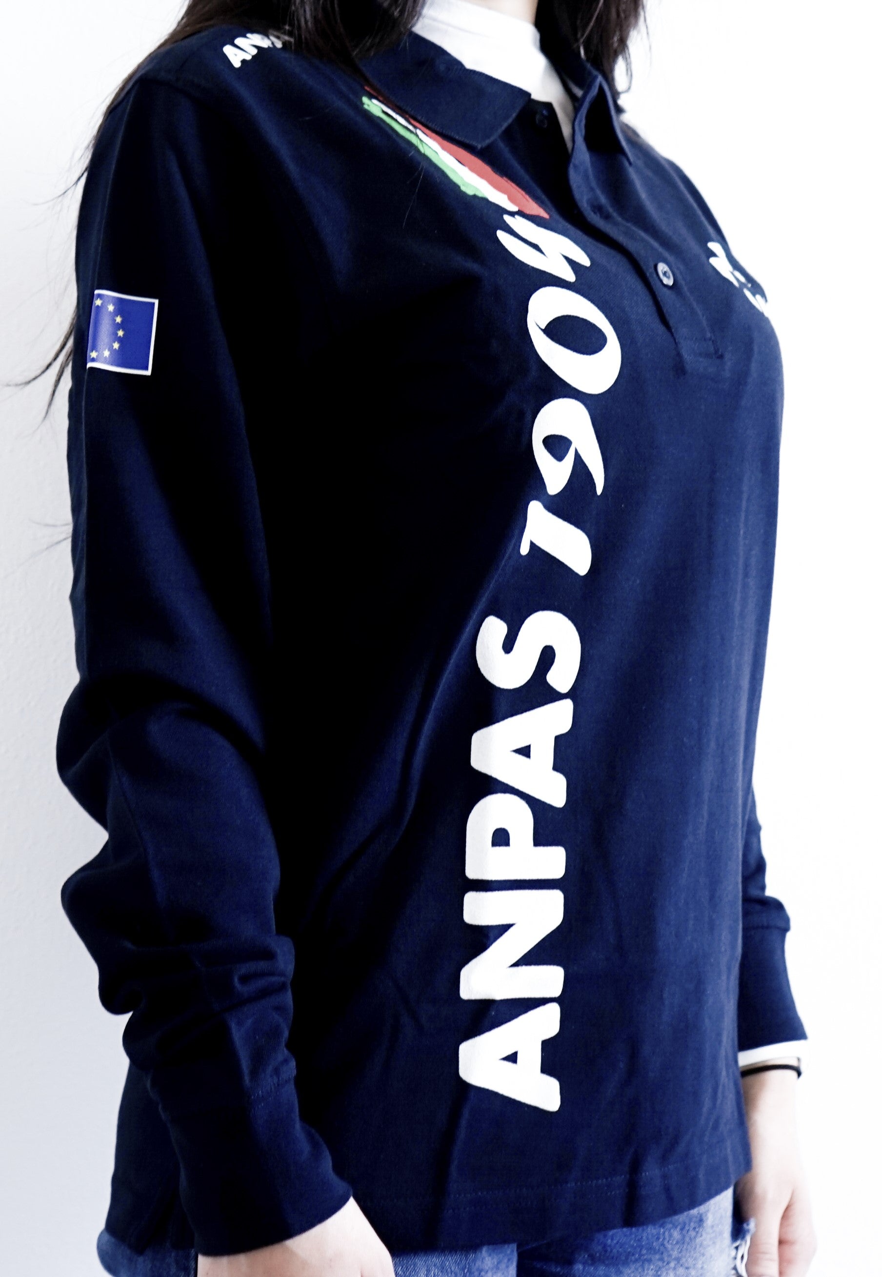 Polo manica lunga 100% cotone con 3 bottoni, colletto e polsino a costine, spacchetti laterali, cuciture del collo coperte con nastro a contrasto, cuciture stretch.